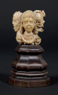 Carved in the round.Three labels attached to the bottom of the pilaster, with the inscriptions: '118 Vente Paris 10 juin 1932'; 'COLLECTION DU DR P. THOBY NANTES XV'; 'EXPOSITION D'ART RELIGIEUX 1933 LA PSALLETTE NANTES 1933, 414'.