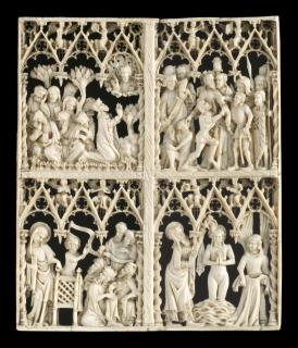 This panel belongs to the same ensemble as three other ones in Edinburgh (Inv. A.1902.215.1 and 3-4), some now at the Victoria and Albert Museum in London (366-1871), an openwork panel of the Nativity formerly in the Trivulzio collection in Milan (see Koechlin 1924), and an openwork panel in the Metropolitan Museum of Art in New York (32.100.207).